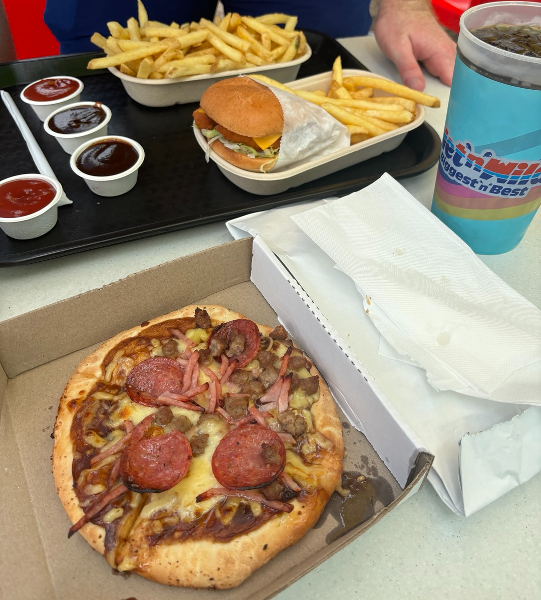 Wet and Wild 놀이동산에 가서 먹은 내 슬픈 점심.. 피자 너무 작고 별로였다.... 가급적 놀이동산 음식은 피하자